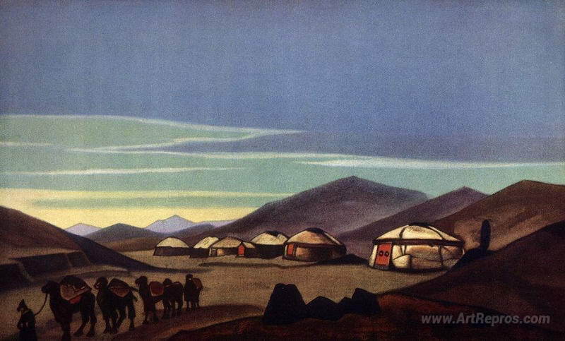 We offer you a handcrafted reproduction on canvas of the famous artwork 'yurts' by Nicholas Roerich, from the Reproduction Museum.