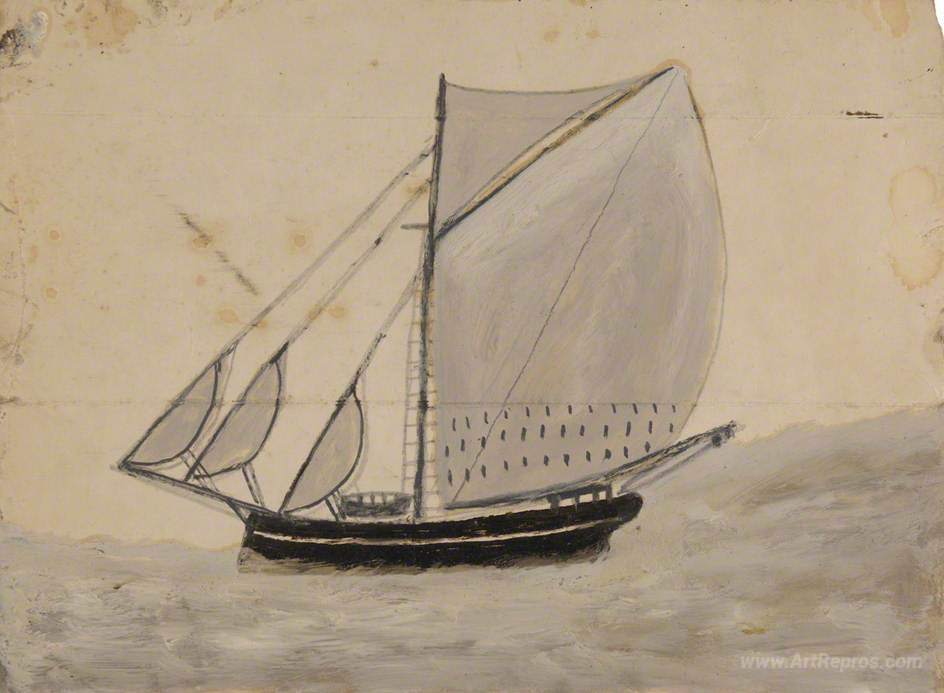 Welcome to our exquisite collection of oil paintings, where artistry meets elegance. Among our featured works is Sailing Boat with French-Grey Sails, an enchanting piece by the revered artist Alfred Wallis. Wallis, known for his unique ability to capture the spirit of the sea and its vessels, employs a rich palette and textured brushwork that draws viewers into his vivid maritime world.
