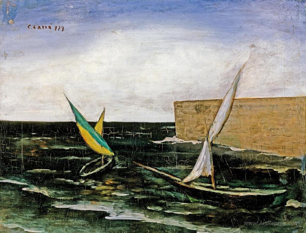 We offer you a handcrafted reproduction on canvas of the famous artwork 'Sails in the port' by Carlo Carra, from the Reproduction Museum.