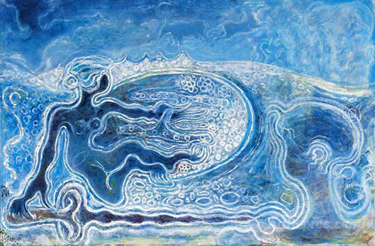 We offer you a handcrafted reproduction on canvas of the famous artwork 'Amazon Woman of the mountain' by Johannes Sveinsson Kjarval, from the Reproduction Museum.