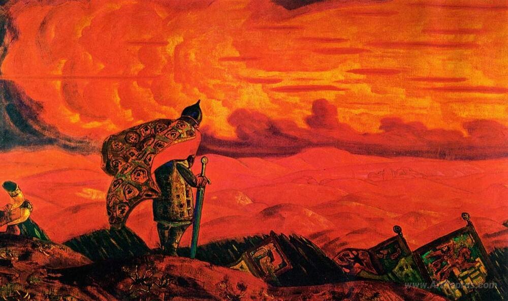 We offer you a handcrafted reproduction on canvas of the famous artwork 'Arrows of sky - spears of land' by Nicholas Roerich, from the Reproduction Museum.