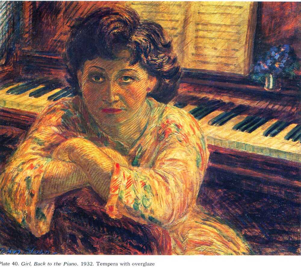 We offer you a handcrafted reproduction on canvas of the famous artwork 'Girl, Back to the Piano' by John French Sloan, from the Reproduction Museum.