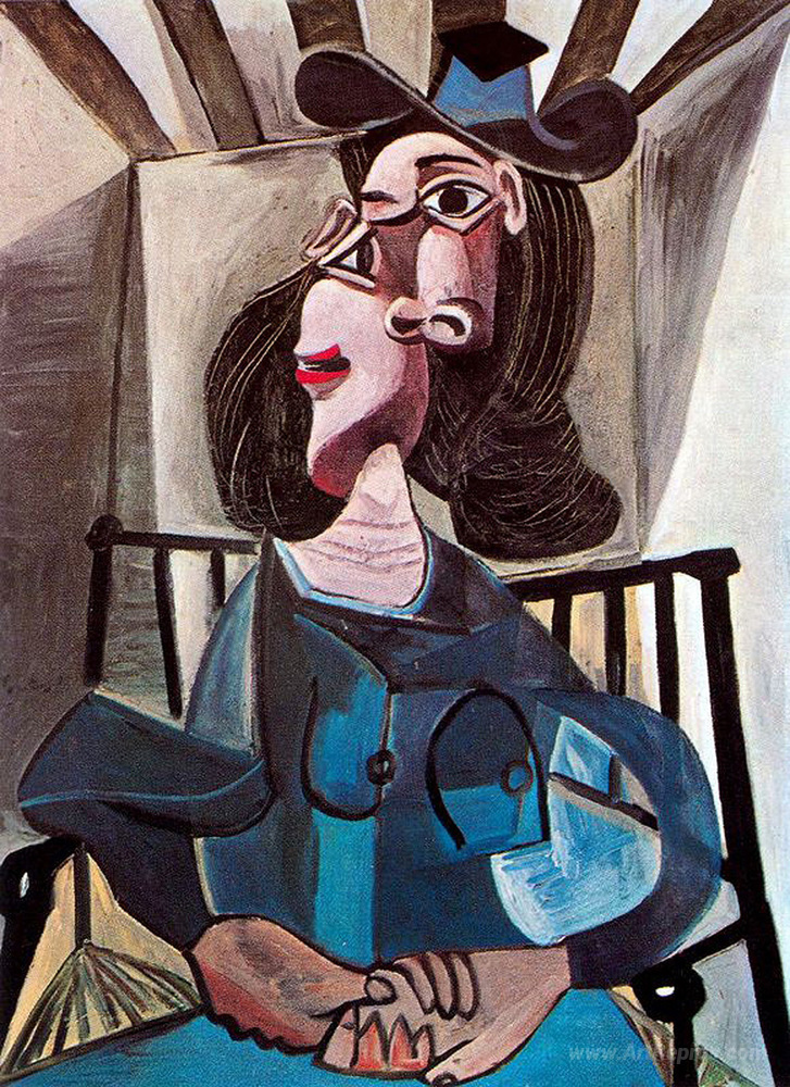 We offer you a handcrafted reproduction on canvas of the famous artwork 'Girl in chair' by Pablo Picasso, from the Reproduction Museum.
