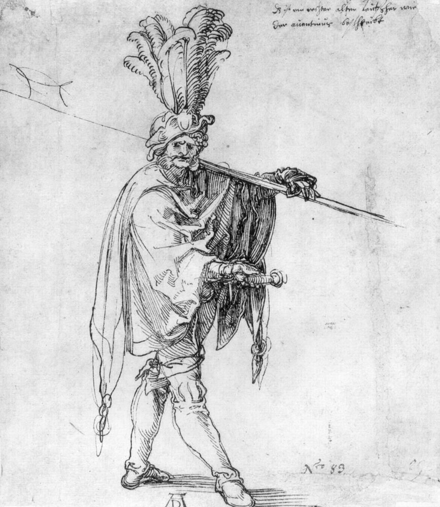 We offer you a handcrafted reproduction on canvas of the famous artwork 'Landsknecht' by Albrecht Durer, from the Reproduction Museum.