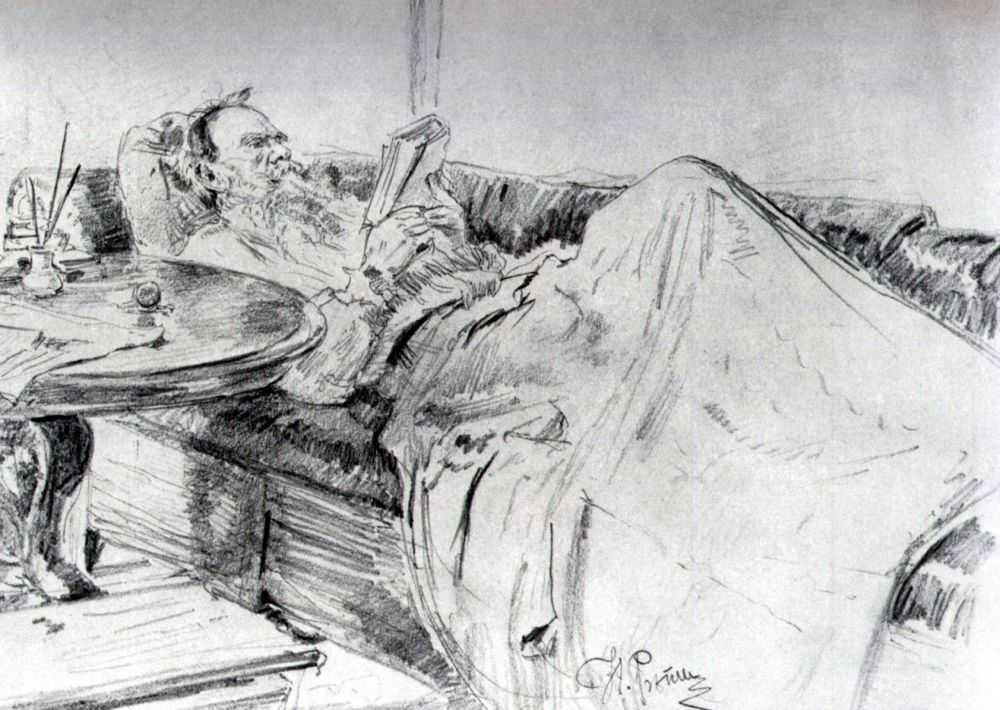 We offer you a handcrafted reproduction on canvas of the famous artwork 'Leo Tolstoy reading' by Ilya Repin, from the Reproduction Museum.