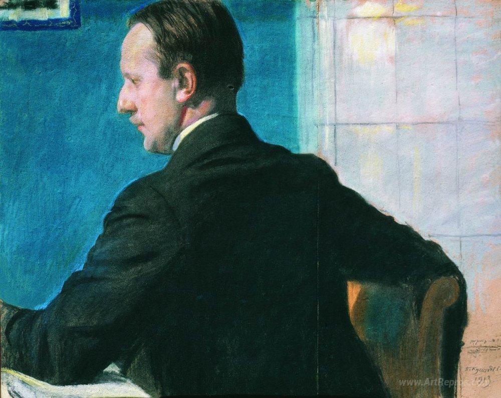 We offer you a handcrafted reproduction on canvas of the famous artwork 'Portrait of M.V. Dobuzhinsky' by Boris Kustodiev, from the Reproduction Museum.