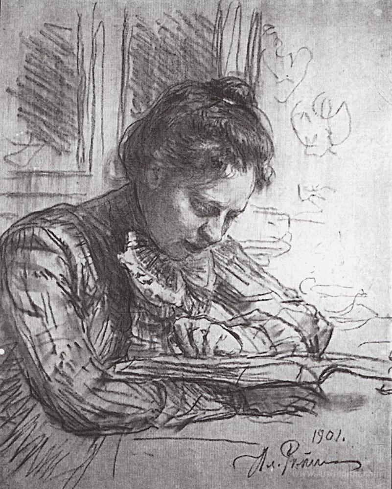 We offer you a handcrafted reproduction on canvas of the famous artwork 'Reading (Portrait of Natalia B. Nordman)' by Ilya Repin, from the Reproduction Museum.