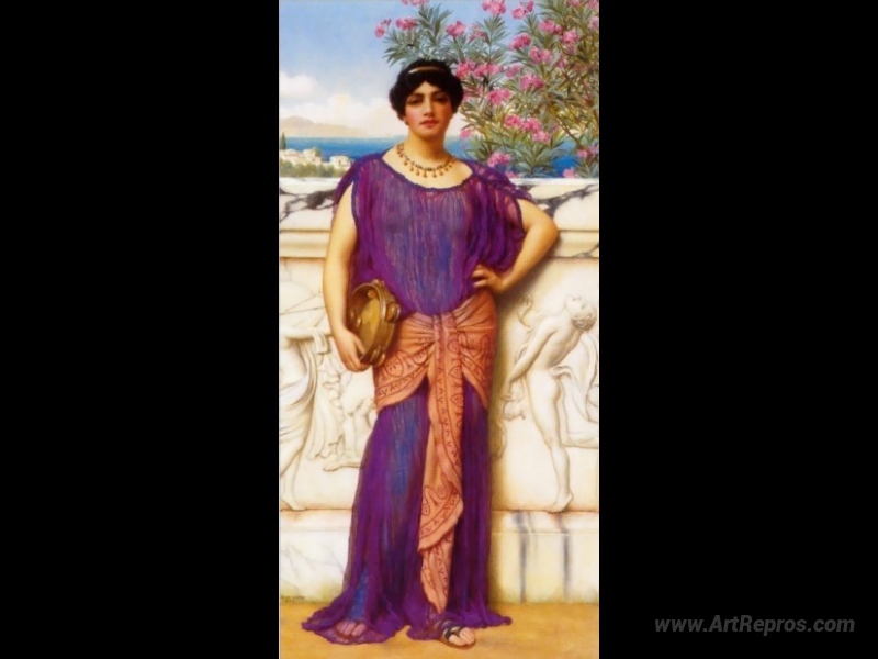 We offer you a handcrafted reproduction on canvas of the famous artwork 'The Tambourine Girl' by John William Godward, from the Reproduction Museum.