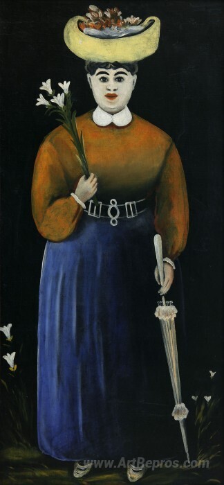 We offer you a handcrafted reproduction on canvas of the famous artwork 'Woman with Flowers and Parasol' by Niko Pirosmani, from the Reproduction Museum.