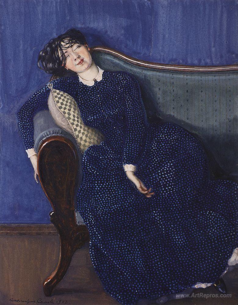 The enchanting serenity of Young Woman. Asleep invites a sense of calm and sophistication into any environment. Somov's meticulous brushwork and visionary approach transform a simple canvas into a portal of tranquility, making this piece ideal for personal sanctuaries or elegant entertaining spaces. Elevate your home's atmosphere with this stunning representation of beauty and repose, and let the timeless essence of Konstantin Somov's artistry enliven your collection.