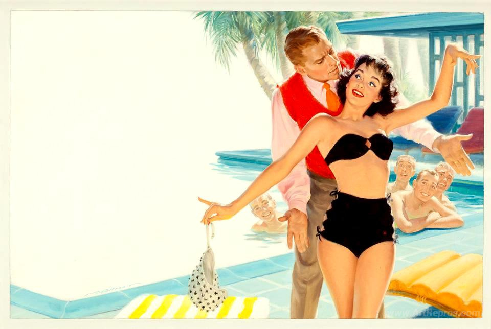 We offer you a handcrafted reproduction on canvas of the famous artwork 'The Lady Changed Her Style, Saturday Evening Post story illustra' by Robert G. Harris, from the Reproduction Museum.