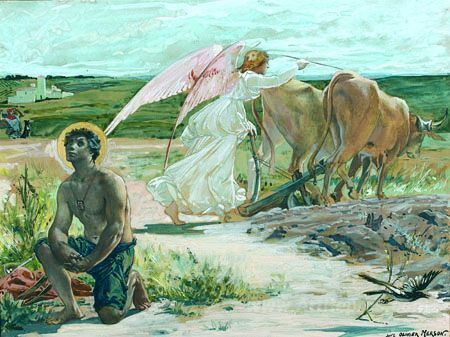 We offer you a handcrafted reproduction on canvas of the famous artwork 'Angel working and Saint in Prayer' by Luc-Olivier Merson, from the Reproduction Museum.