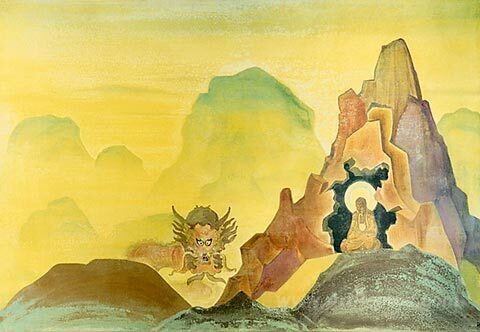 We offer you a handcrafted reproduction on canvas of the famous artwork 'Arhat' by Nicholas Roerich, from the Reproduction Museum.