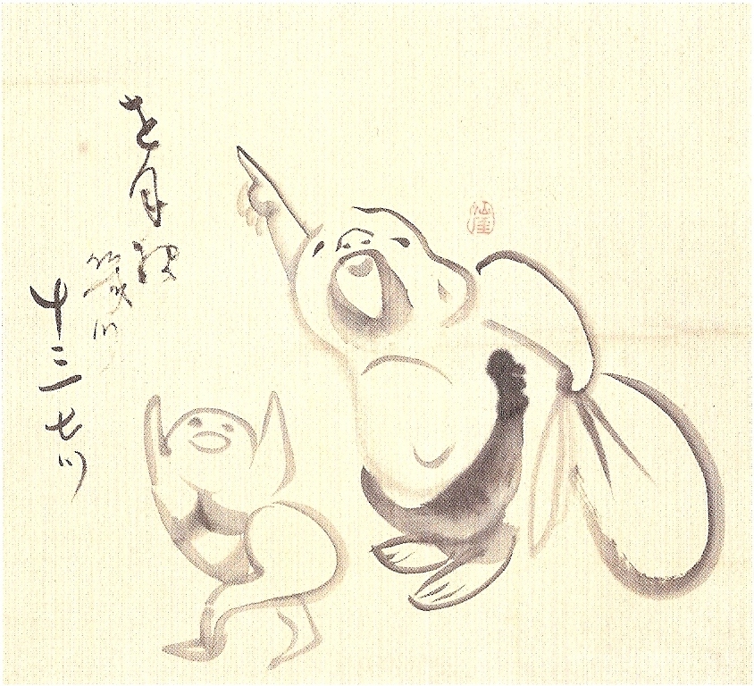 We offer you a handcrafted reproduction on canvas of the famous artwork 'Hotei and Child' by Sengai, from the Reproduction Museum.