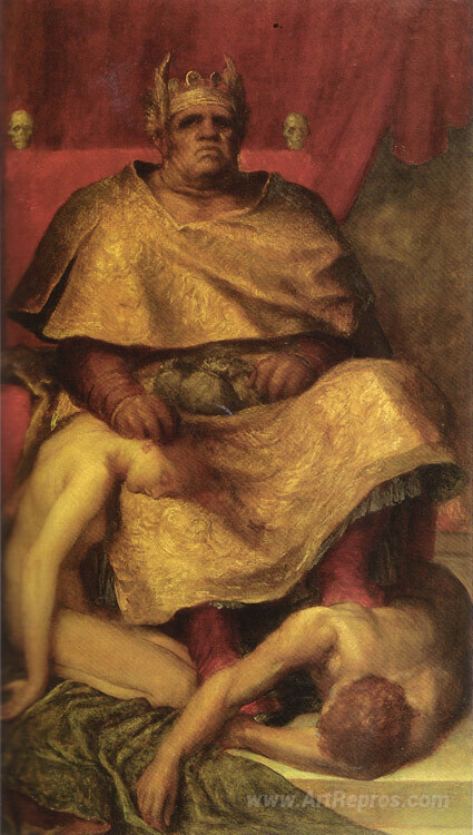 We offer you a handcrafted reproduction on canvas of the famous artwork 'Mammon' by George Frederick Watts, from the Reproduction Museum.