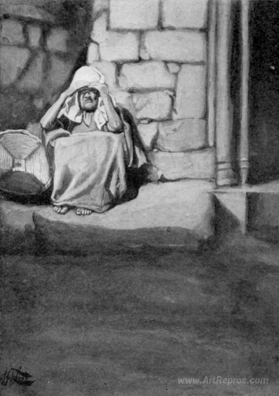 We offer you a handcrafted reproduction on canvas of the famous artwork 'Miriam Shut Out from the Camp' by James Tissot, from the Reproduction Museum.