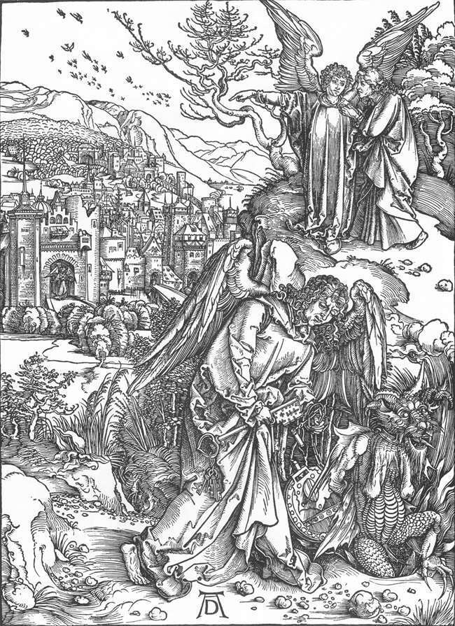 We offer you a handcrafted reproduction on canvas of the famous artwork 'The Angel with the Key to the Bottomless Pit' by Albrecht Durer, from the Reproduction Museum.