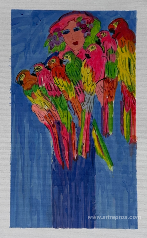 Blue Lady with Parrots