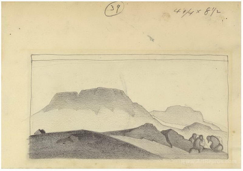We offer you a handcrafted reproduction on canvas of the famous artwork 'Figures in a landscape' by Nicholas Roerich, from the Reproduction Museum.