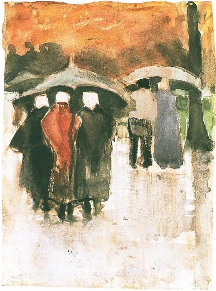 We offer you a handcrafted reproduction on canvas of the famous artwork 'Scheveningen Women and Other People Under Umbrellas' by Vincent van Gogh, from the Reproduction Museum.