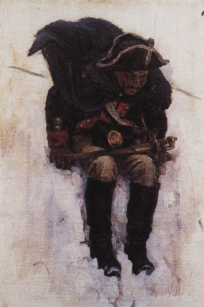 We offer you a handcrafted reproduction on canvas of the famous artwork 'Soldier descending from the snowy mountain' by Vasily Surikov, from the Reproduction Museum.