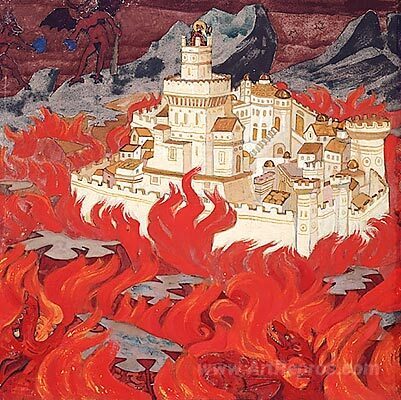 We offer you a handcrafted reproduction on canvas of the famous artwork 'Fairest City - the anger for enemies' by Nicholas Roerich, from the Reproduction Museum.