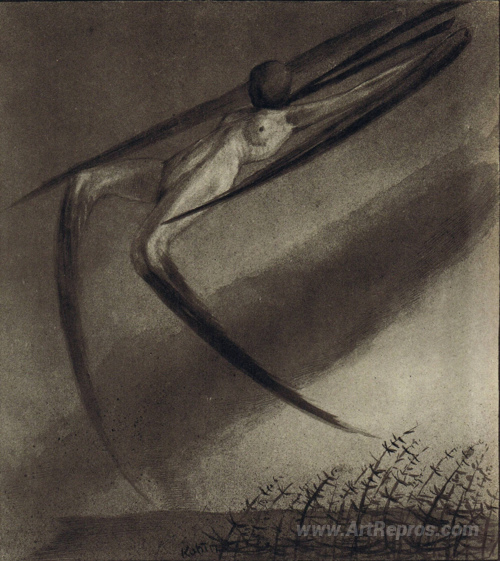 We offer you a handcrafted reproduction on canvas of the famous artwork 'jede nacht besucht uns ein traum' by Alfred Kubin, from the Reproduction Museum.