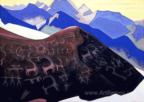 We offer you a handcrafted reproduction on canvas of the famous artwork 'Lahaul rocks (Signs of Gesar)' by Nicholas Roerich, from the Reproduction Museum.