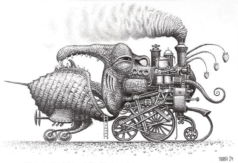 We offer you a handcrafted reproduction on canvas of the famous artwork 'Narrow Gauge train' by Jacek Yerka, from the Reproduction Museum.