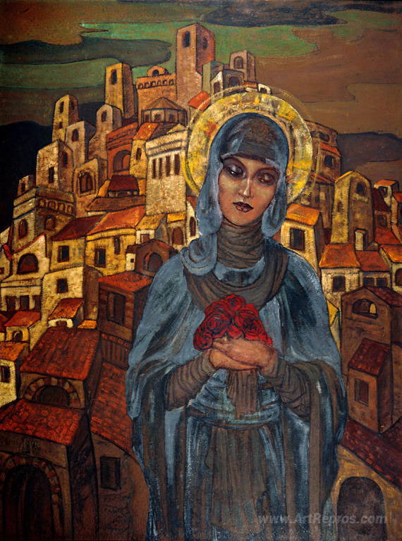 We offer you a handcrafted reproduction on canvas of the famous artwork 'Roses of Heart. Princess Olga.' by Nicholas Roerich, from the Reproduction Museum.