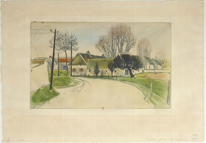 We offer you a handcrafted reproduction on canvas of the famous artwork 'La Maison A L'Entree Du Village ' by Theophile Steinlen, from the Reproduction Museum.