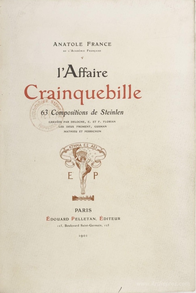 We offer you a handcrafted reproduction on canvas of the famous artwork 'L'Affaire Crainquebille cover ' by Theophile Steinlen, from the Reproduction Museum.