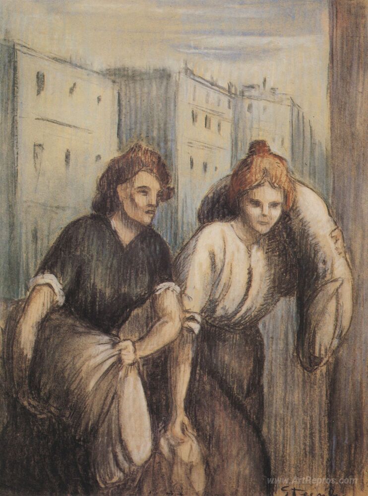 We offer you a handcrafted reproduction on canvas of the famous artwork 'Laundresses ' by Theophile Steinlen, from the Reproduction Museum.