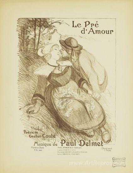 We offer you a handcrafted reproduction on canvas of the famous artwork 'Le Pre D'Amour ' by Theophile Steinlen, from the Reproduction Museum.