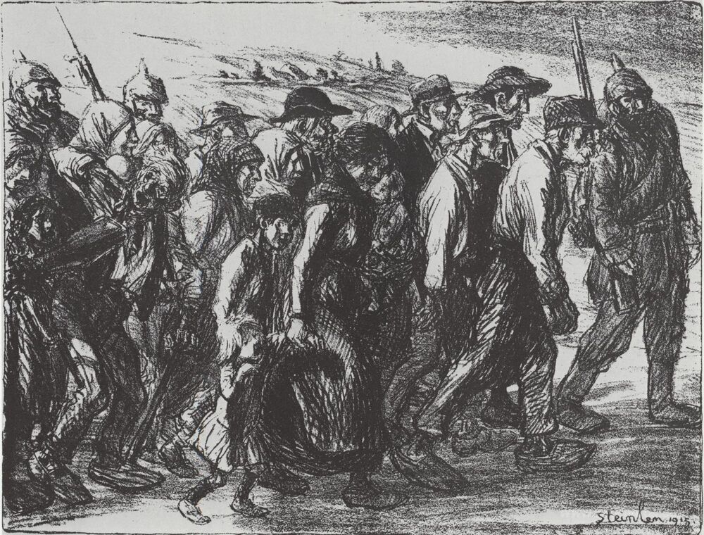 We offer you a handcrafted reproduction on canvas of the famous artwork 'Les Internes - Entree Dans Les Geoles Allemandes ' by Theophile Steinlen, from the Reproduction Museum.