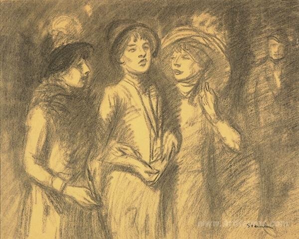We offer you a handcrafted reproduction on canvas of the famous artwork 'Midinettes' by Theophile Steinlen, from the Reproduction Museum.