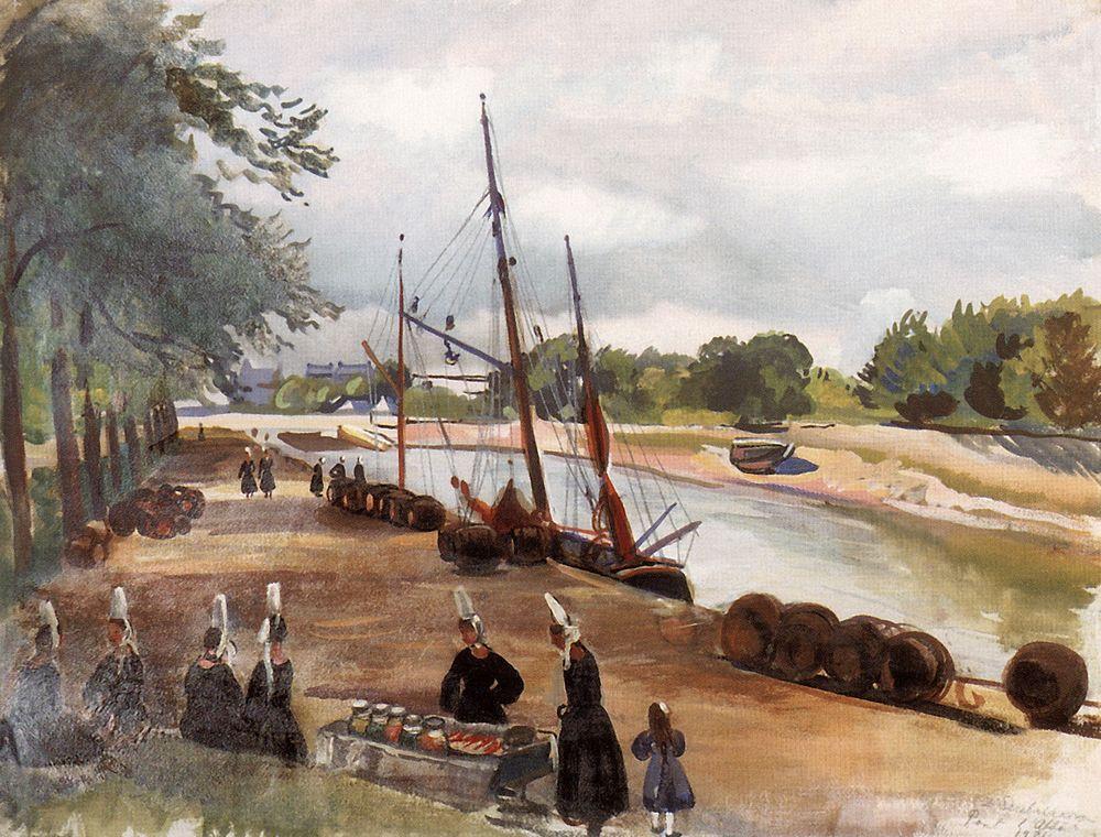 We offer you a handcrafted reproduction on canvas of the famous artwork 'Brittany. The town of Pont L`Abbe. Port.' by Zinaida Serebriakova, from the Reproduction Museum.