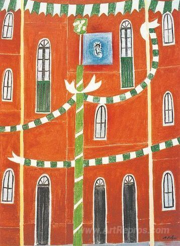 We offer you a handcrafted reproduction on canvas of the famous artwork 'Feast of Saint John' by Alfredo Volpi, from the Reproduction Museum.
