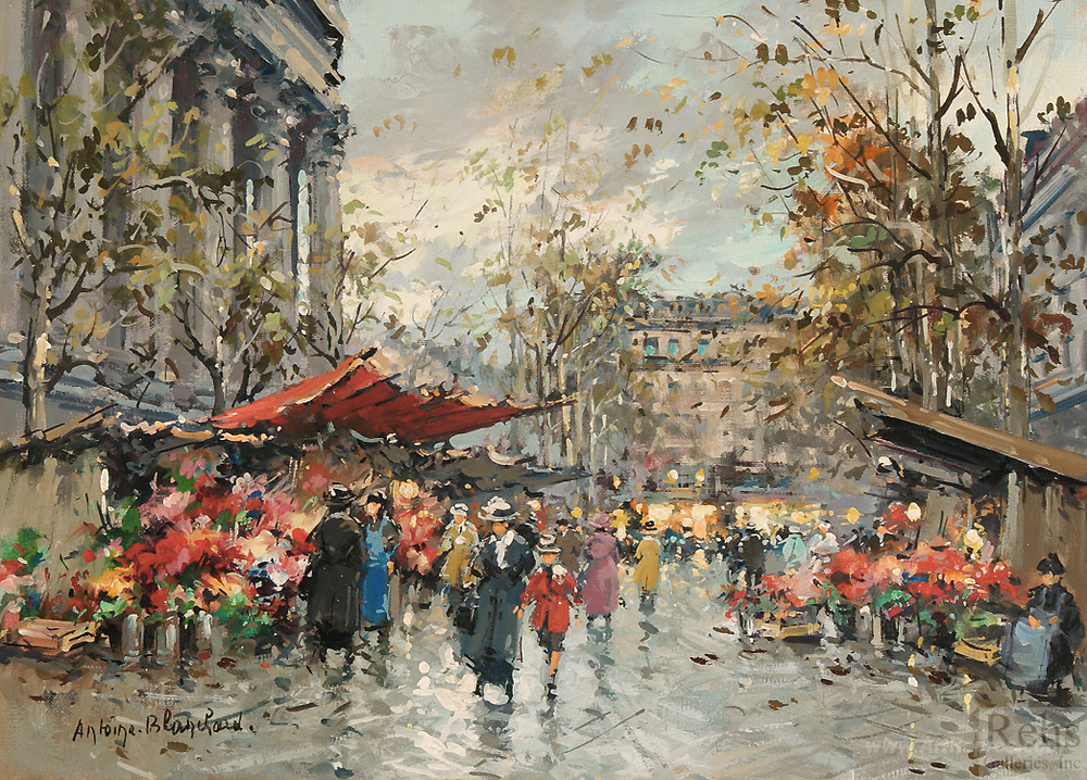 Welcome to our exclusive collection of oil paintings, where the vibrant world of fine art meets your personal space. Among our featured works is Flower Market Madeleine by the illustrious artist Antoine Blanchard. Known for his breathtaking depictions of Parisian life, Blanchard masterfully captures the charm and romance of the city's flower markets, inviting viewers to experience the bustling atmosphere and the delicate interplay of light and color.