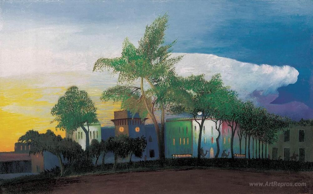 Welcome to our curated collection of exquisite oil paintings, where each piece is a window into the artist's vision and mastery. One remarkable example is Fortress with Arabs Riding Camels by the celebrated Hungarian painter Tivadar Kosztka Csontvary. With a unique blend of Symbolism and Impressionism, Csontvary's work captivates the viewer, drawing them into a world brimming with rich narratives and vibrant colors. His adept use of brushwork creates a lively texture that brings the subjects to life, while his keen eye for detail evokes a sense of wonder and depth.