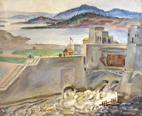We offer you a handcrafted reproduction on canvas of the famous artwork 'Murmansk. Tulomstroy. Spillway.' by Pyotr Konchalovsky, from the Reproduction Museum.