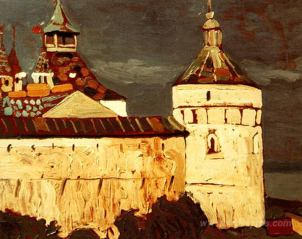 We offer you a handcrafted reproduction on canvas of the famous artwork 'Rostov Veliky. Attics of princely houses.' by Nicholas Roerich, from the Reproduction Museum.
