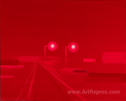 We offer you a handcrafted reproduction on canvas of the famous artwork 'Untitled (Brilliant Red Digital Breakup Lights), from Green Zone' by Wanda Koop, from the Reproduction Museum.