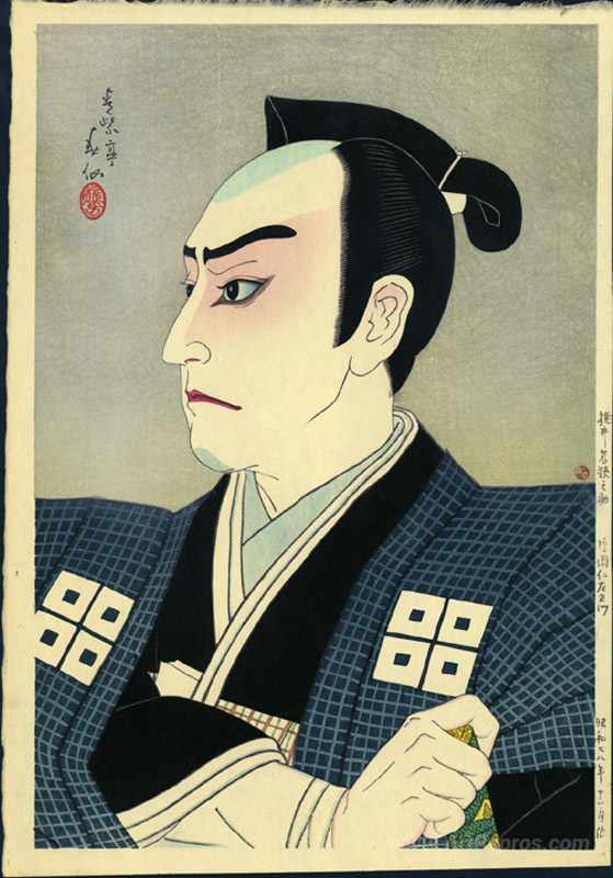 We offer you a handcrafted reproduction on canvas of the famous artwork 'Kitaoka Nizaemon as Wakasanosuke in Chushingura' by Natori Shunsen, from the Reproduction Museum.